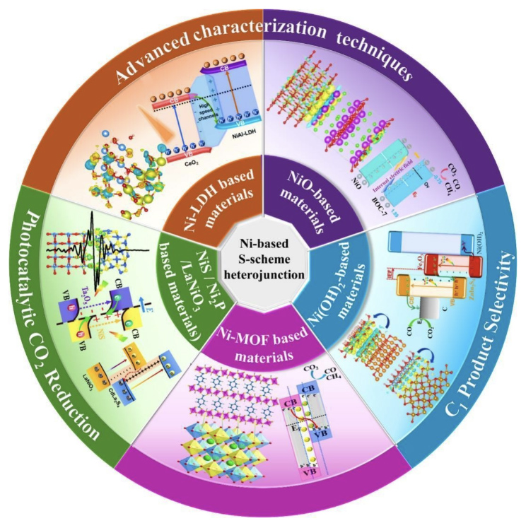 Overview of Ni-based S-scheme heterojunctions for photocatalytic CO₂ reduction with enhanced C₁ product selectivity.